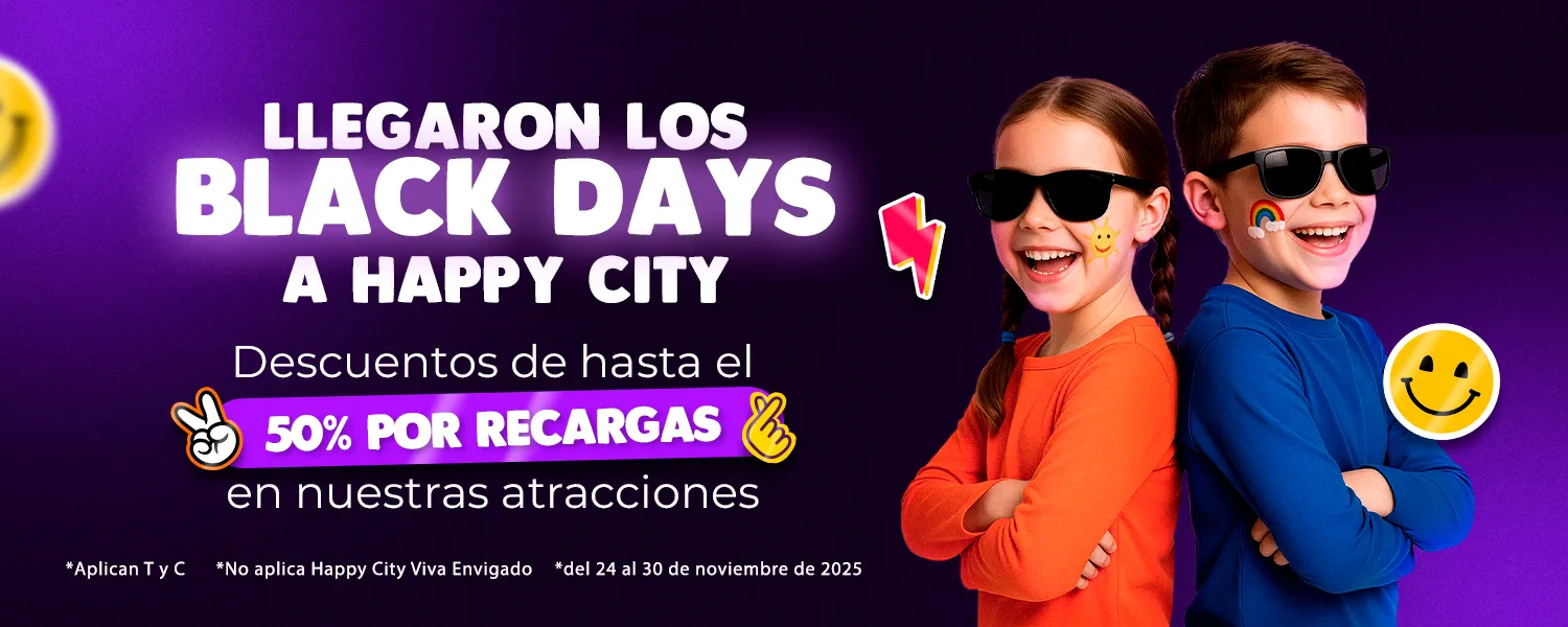 Una llave que abre la puerta hacia la aventura y la magia de nuestros parques: así es la tarjeta recargable Happy City, ¡un pasaporte a la diversión! Con ella disfruta de todos los juegos y atracciones que tenemos para ofrecerte. Adquiérela en todos los puntos de carga Happy City.
